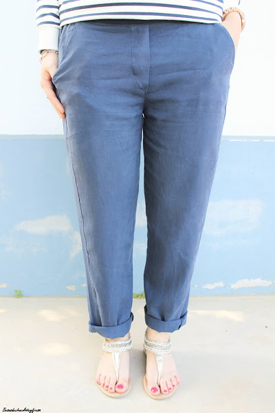 Hoy os traigo un nuevo post de "como combinar..." en este caso aprenderemos a combinar a la perfección los pantalones tipo capri, cómodos y frescos para esta temporada concretamente en azul marino, un color muy marinero y veraniego. Los pantalones que os enseño son de mi tienda online, la mar de cómodos y elásticos.