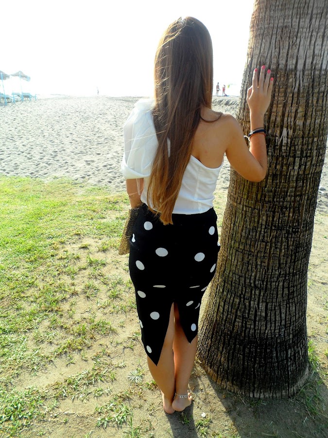 Después de un fin de semana irrepetible que me ha servido para desconectar y poder despedirme del verano como se merece, empezamos la semana con energía. Hoy os traigo un look donde los protagonistas son los lunares, con esta falda de punto en blanco y negro, y con una apertura muy sexy en la parte trasera. Queda súper bien, porque se ajusta al cuerpo y se adapta perfectamente.