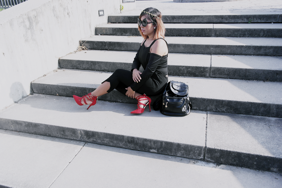 En cuanto a los accesorios, utilices una hermosa corona de flores doradas (mi obsequio favorito de navidad) de CREACIONESWM, un backpack (tengo una pequeña obsesión con ellos) negro muy cómodo e ideal para llevar a muchos lugares y unas gafas de sol que aportaron ese toque gatuno representativo en mis outfits. De los zapatos no les quiero decirles nada, solamente con mirarlos sé que lo sabrán todo.