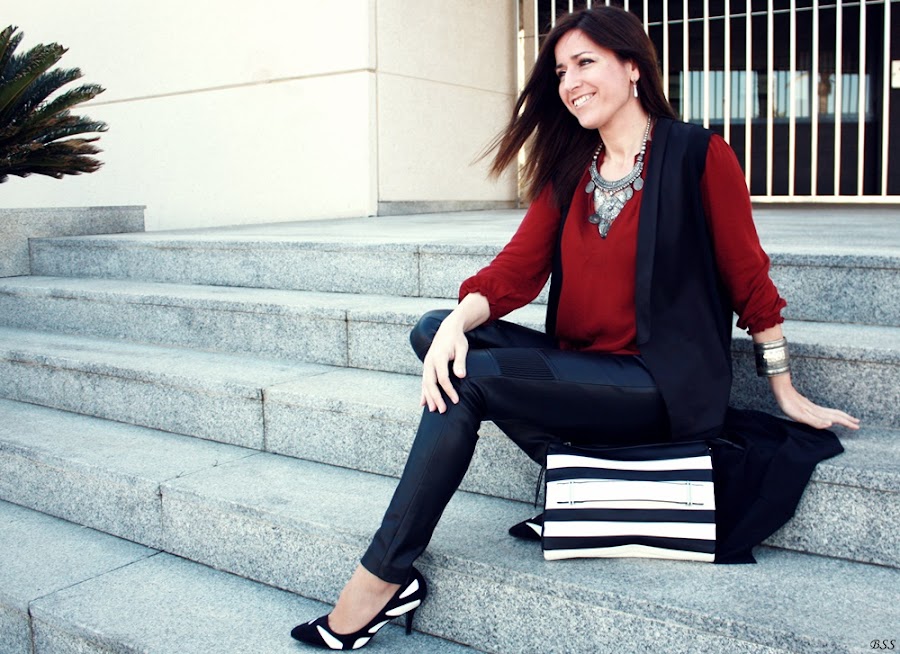 Mi apuesta de hoy es muy sencilla pero me encanta, restando sobriedad a los outfits con una mezcla entre complementos boho y unas rayas que no pasan desapercibidas.