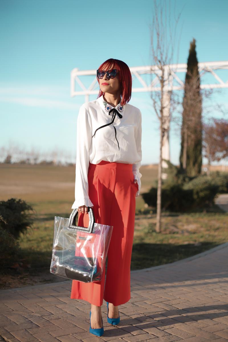 Ya me conocéis que siempre apuesto por el color y aquí una de las muchas muestras que os he enseñado en este blog Claro está que el protagonista del este outfit casual y muy de oficina podríamos decir, es el pantalón de estilo culotte , un pantalón de tela que podemos usar perfectamente ahora en primavera y en verano.