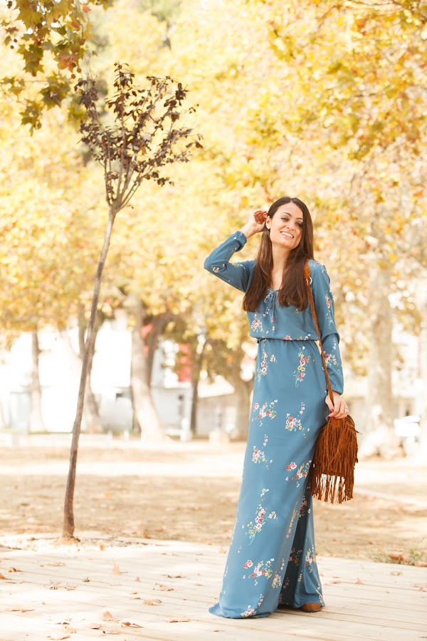 Hoy os presento un look de entretiempo de aire boho con un maravilloso maxivestido de manga larga de TONALÁ. La verdad es que me encantó nada más verlo tanto por la caída, como por el estampado y su agradable tejido. Además ya sabéis que me pierden los vestidos largos... :)