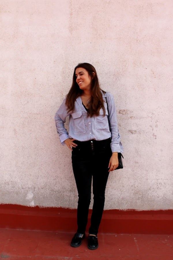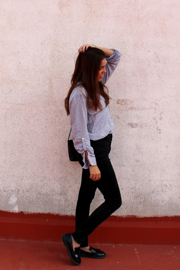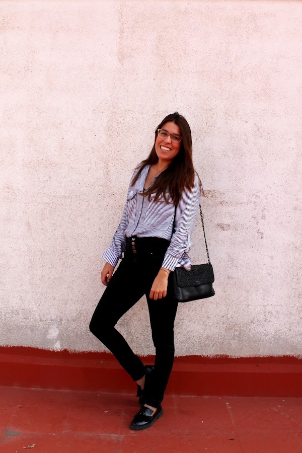 A lot of times we ask ourselves how we can wear a striped shirt. Today I show you a combination with a striped shirt from Zara new collection (29.95€) and I wear it with this black jeans high waist from Stradivarius las year, and that shoes also from Stradivarius.