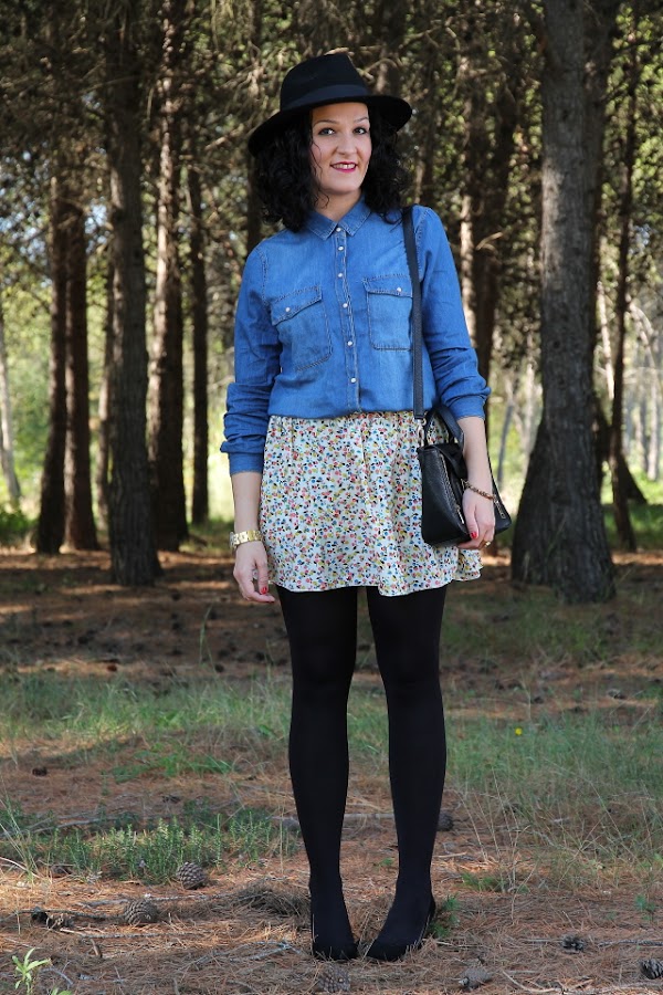 Siempre me ha gustado combinar los estampados de flores con prendas tejanas, los looks que obtengo con ellos me resultan muy dulces. Hoy os enseño uno de ellos, un outfit con camisa tejana y falda de flores. Para los complementos mi sombrero favorito y el bolso estilo Phillip Lim que no me canso de llevar por lo bonito y cómodo que es.