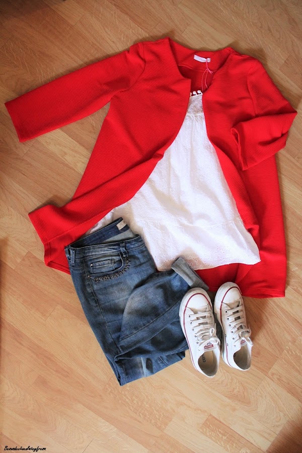 Hoy os doy algunas claves para combinar a la perfección una chaqueta roja, los días que el sol no haga acto de presencia o para las noches fresquitas de verano. La chaqueta que os enseño hoy es de mi tienda online 100% algodón y muy fresquita, de manga 3/4 larguita sin forro interior.
