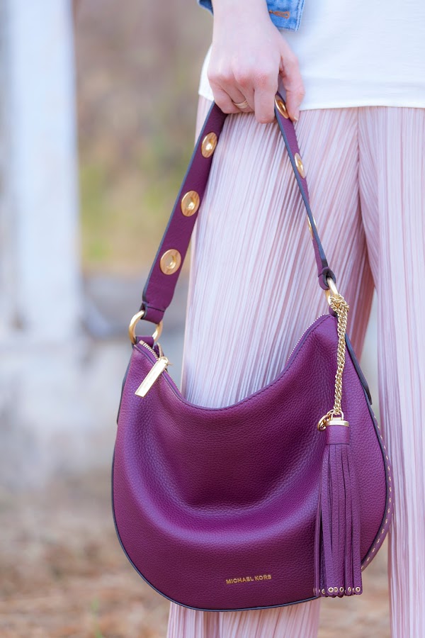 Como se nota que ha llegado el calorcito y tanto los colores vibrantes como los estampados propios del verano ya han aparecido. Hoy llevo un top tejano con escote enseñando los hombros que he combinado con unos pantalones de rayas que me encantan y que van a ser unos de mis favoritos este verano. Para darle luz al outfit, le he añadido los complementos en fucsia tanto en los zapatos como en el bol ...