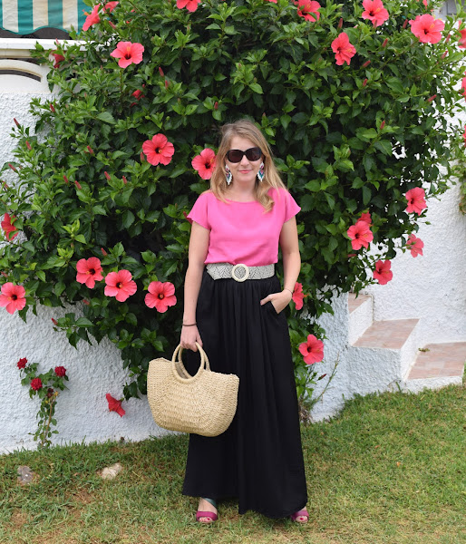 Holaaa!! Hoy os enseño un look con maxifalda rosa chillón, y digo chillón porque de verdad lo es, aunque en las fotos no se aprecie mucho. Esta falda la compré en la tienda 10pavos de Castellón, en la que todos sus artículos son al módico precio de 10 euros. Me gustó por el color, ya sabéis que de vez en cuando me gusta llamar la atención... Además es ideal porque tenía el collar cuello en rosa fl ...