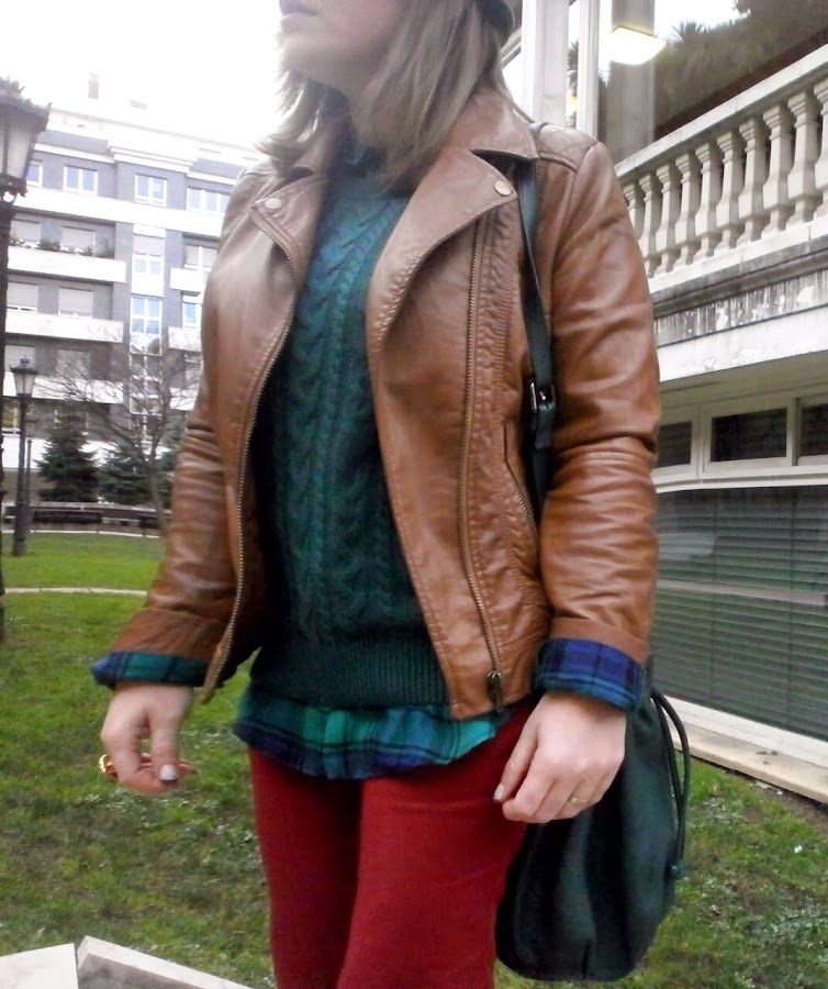 La combinación de colores es una de mis favoritas, verde con granate, en éste caso es clarito, y toques de azul marino. Ésta vez me atreví con la cazadora color camel a romper la combinación y es que pienso que es un color que combina con todo ¿no?.