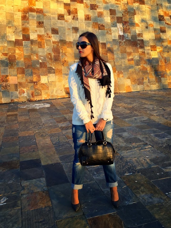 Good night loves! We start a new week and I hope that this one will be more quiet than the last. Today I show you an easy outfit, but that I love it. In the outfit of the day I wore boyfriend jeans and one of my favourites sweaters of this season. To give a touch of chic to the outfit, I wore heels and one of my favourites foulards.