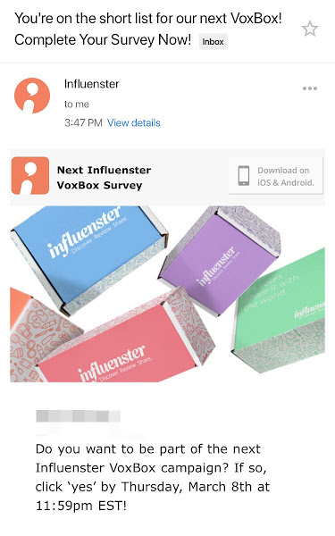 Lo que toca es esperar que te llegue un correo con una nueva promoción y una encuesta para ver si seras elegido para probar una de sus cajitas de ese mes, esas cajitas la llaman VoxBox.