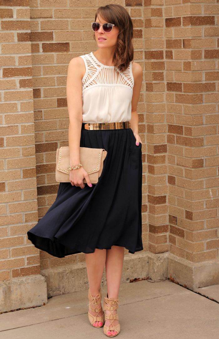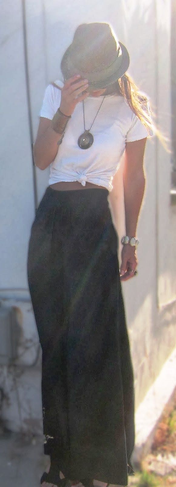 Aquellas que no tenemos mucho presupuesto,pero que queremos vestirnos bien podemos hacer maravillas con un look tan sencillo como una blusa blanca y una falda maxi negra.