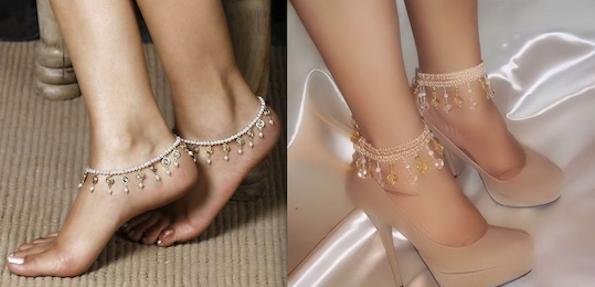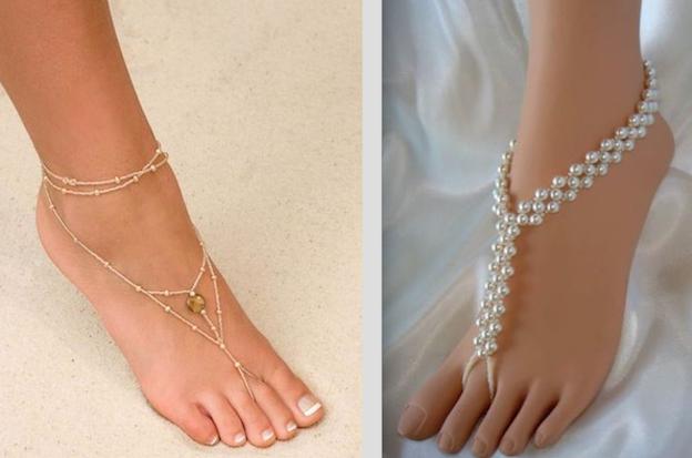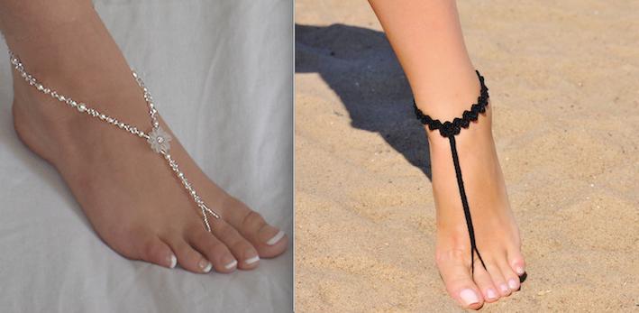 Una buena idea es comprar lo que se conoce como “bare foot” y que consiste en un accesorio para los pies, que se sujeta en el tobillo y en un dedo para que permanezca en el pie. Tienen la ventaja de que no son caros y los puedes quitar y poner cuando quieras y usar con varios zapatos cambiándoles el aspecto totalmente.