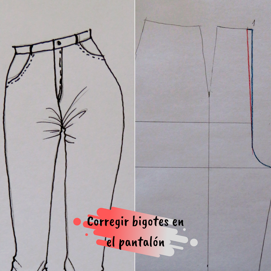 Por otro lado, si usas el patrón base que te enseño, es decir, el que no da ese defecto, pero quieres que tu pantalón tenga esos bigotes porque estás haciendo un tejano informal, te indico qué debes hacer: