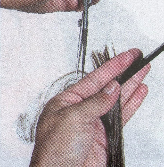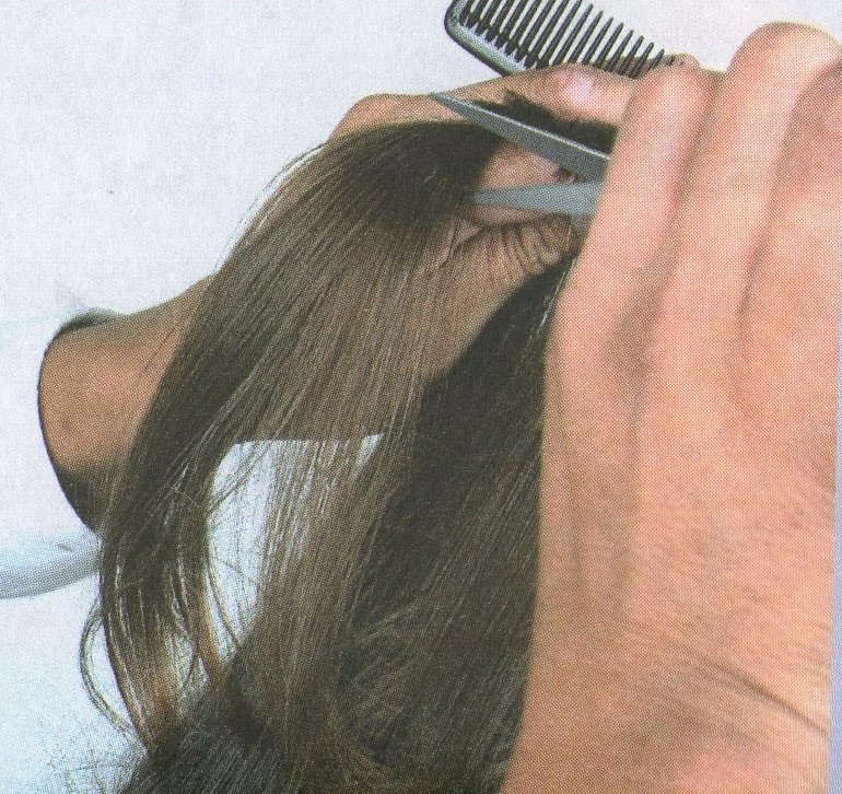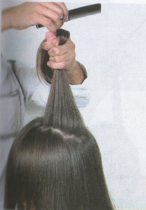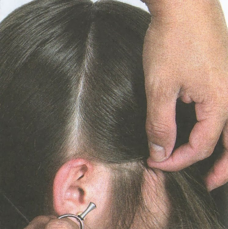 MATERIALES: Peine. Tijera dulce. Tijera micro- dentada. PROCEDIMIENTO: Trazar una raya en la coronilla, desde la oreja derecha a la izquierda.