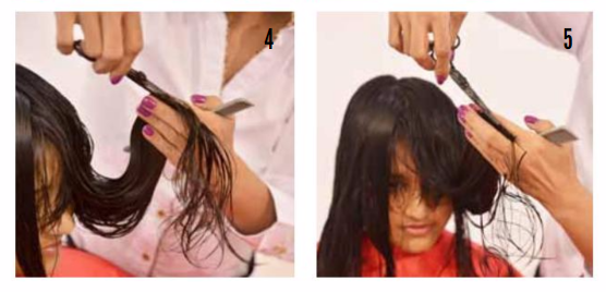 Toma otro mechón de cabello y utiliza el corte que hicimos en el paso anterior como guía. Corta por el mismo nivel que lo hiciste en el paso anterior.