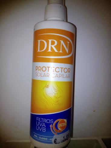 Y para proteger el pelo del sol y de los daños que se producen en nuestro cabello, tengo el protector capilar , que me compre en una pefumeria de la cadena DRUNI, y me costó alrededor de 2 euros.