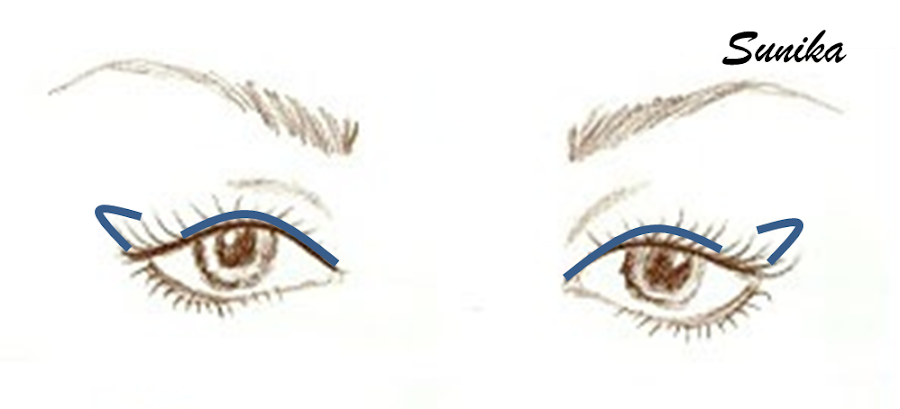 Si delineamos el ojo de forma normal vamos a acentuar está sensación de caída hacia abajo, Lo que debemos es con el delineador compensar esta caída, elevando ópticamente esa zona.