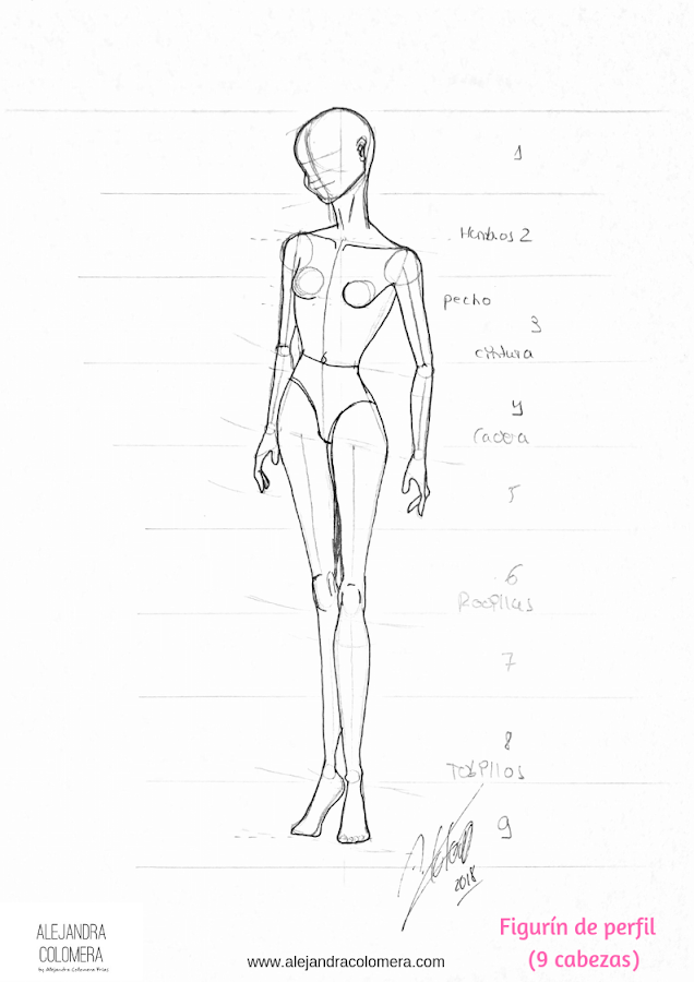 Para empezar te dejaré la plantilla gratis descargable, donde tendrás el eje dividido en 9 cabezas y poder dibujar tu figurín a partir de esta proporción. En esta entrada la podrás descargar plantilla descargable.