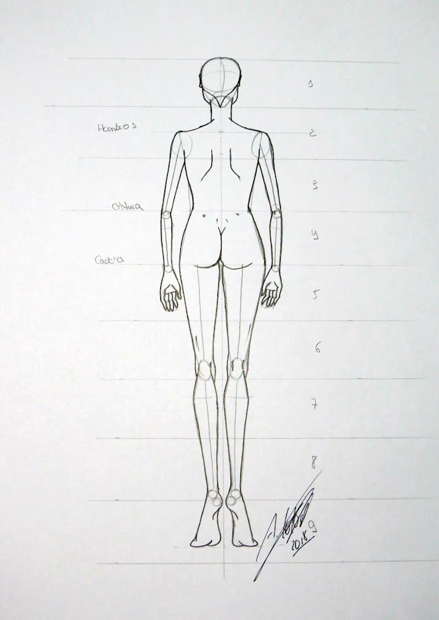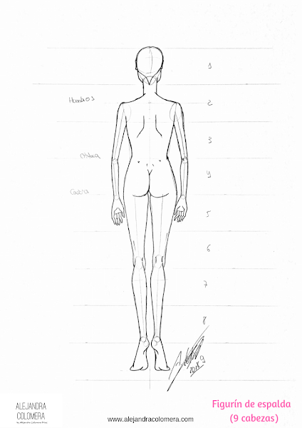Hoy te voy a enseñar a dibujar un figurín de moda visto de espalda.