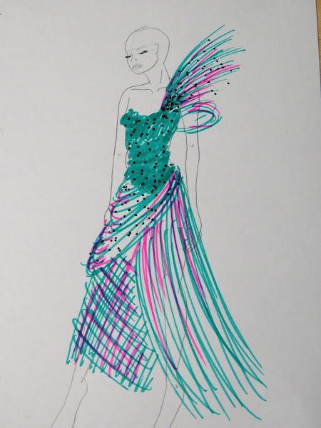 Holiii!!! Hoy os comparto una forma rápida y sencilla de crear figurines de moda en tan sólo 3 minutos, de forma totalmente improvisada, usando sólo líneas y puntos y adaptándolas a una prenda. Para ello sólo he utilizado 4 rotuladores "edding".