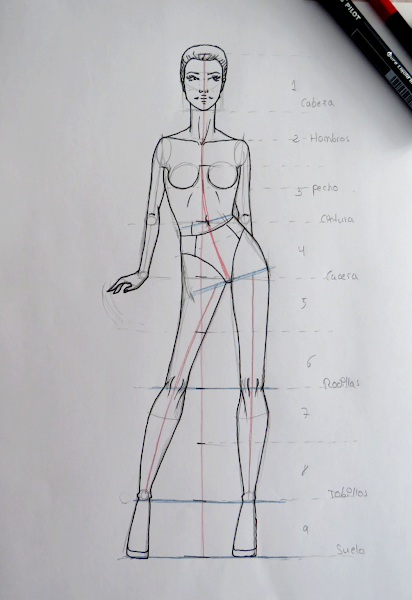 Si nunca has dibujado un figurín de moda, te recomiendo que visites este tutorial, así lo tendrás mucho más detallado y empezarás por una postura sencilla: Cómo dibujar figurines de moda paso a paso. Con fotos y figurín descargable gratis.