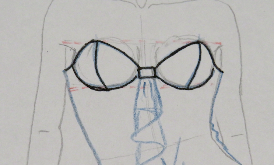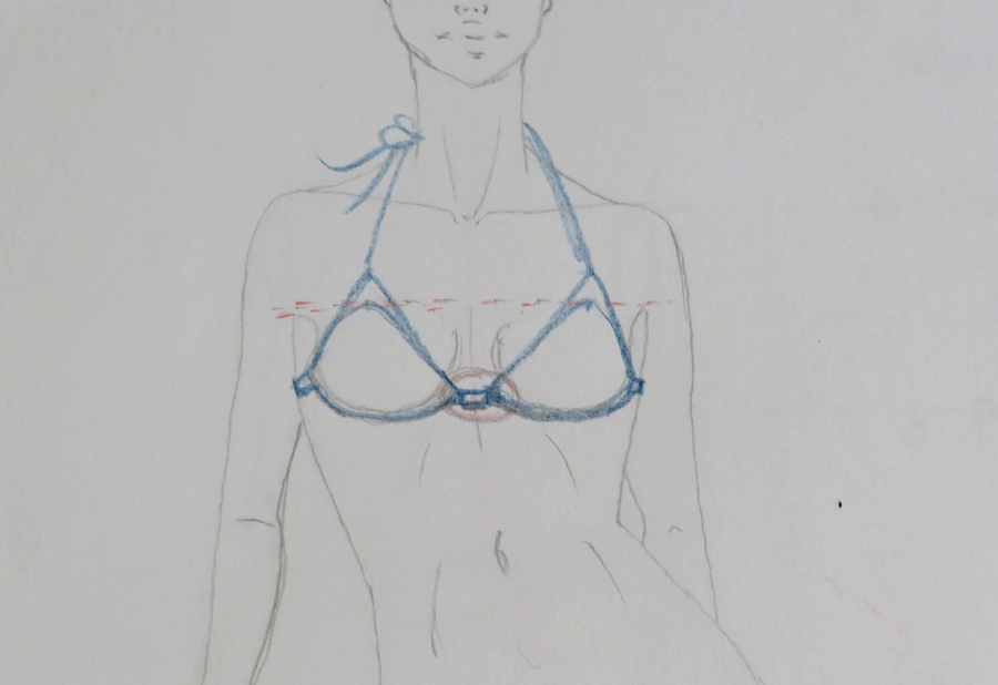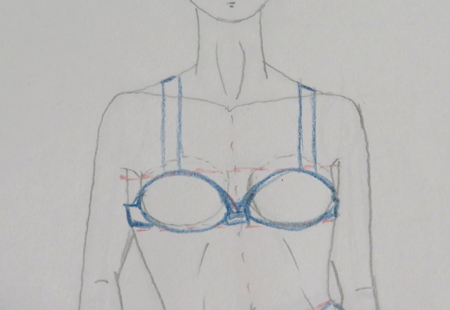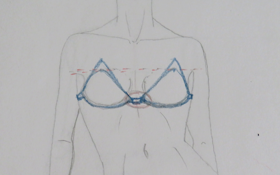 Para mi diseño, he trazado un corte por el centro de cada copa, y dos cortes en la zona de la braguita