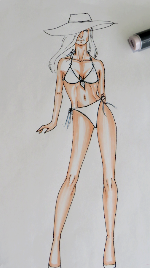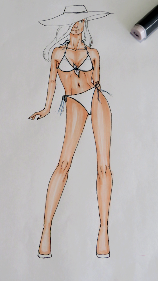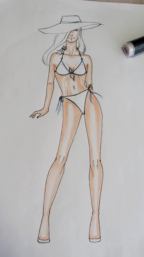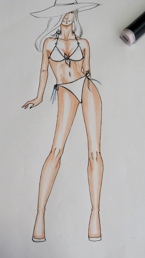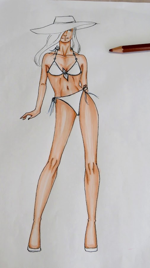 Como hemos estado diseñando trajes de baño, la piel cobra bastante protagonismo, por lo tanto es bueno elegir los tonos adecuados y aprender a colorearla. Yo te he dejado cada paso fotografiado.