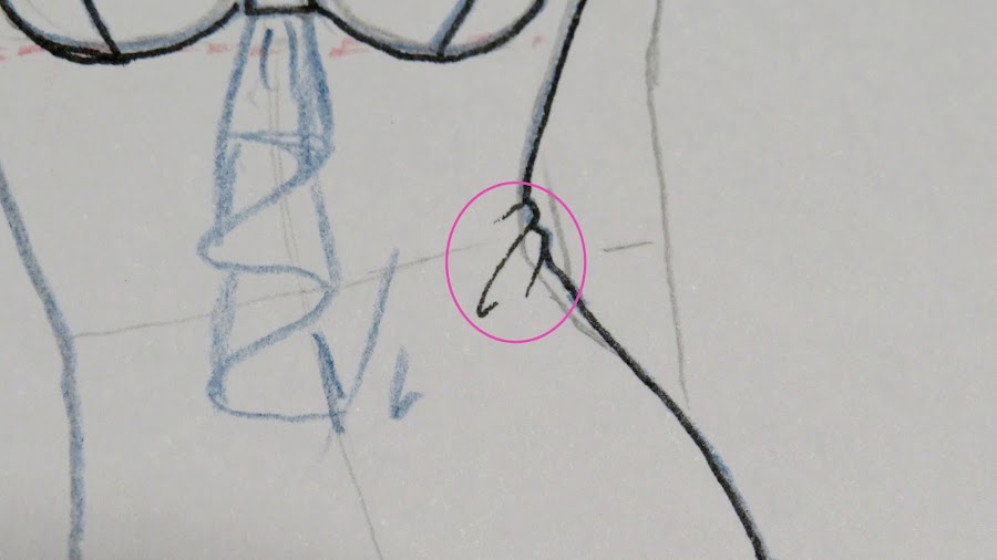 Fíjate como en la zona donde se inclina la cintura, he dibujado unas especies de ondas