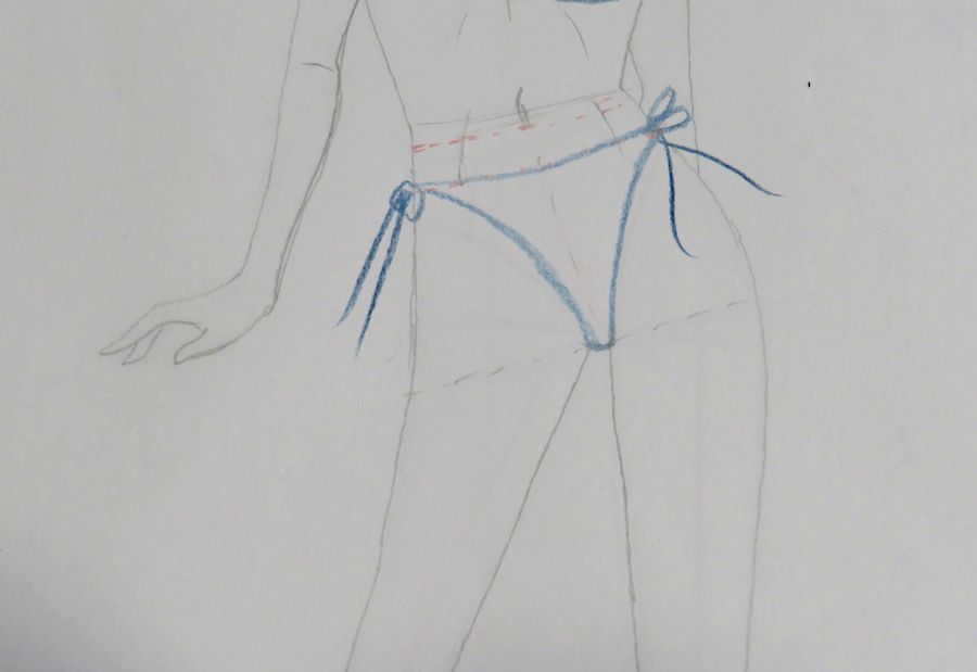 También he marcado, en la parte inferior, el ancho que tendrá nuestra braguita mediante dos líneas, totalmente paralelas, ya que este modelo no va a ir con lazada
