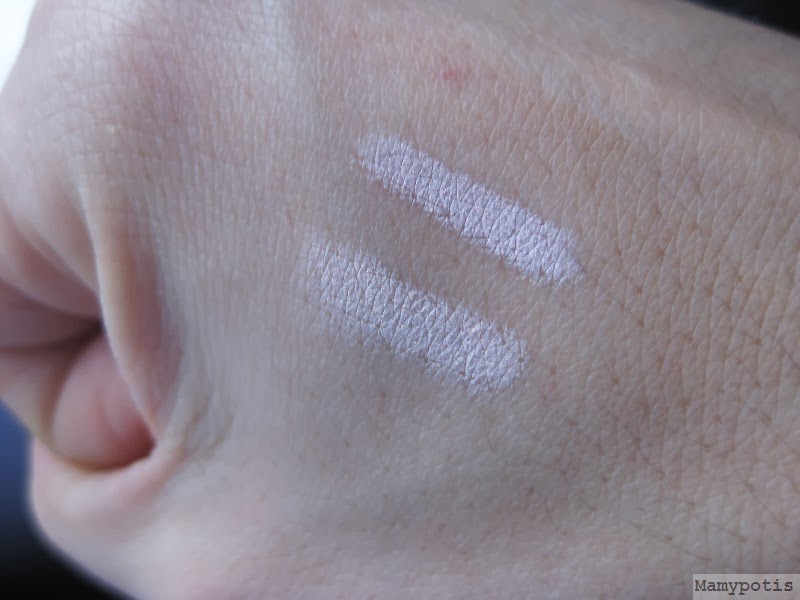Arriba lápiz y swatch de Deliplús y abajo lápiz y swatch de Benefit