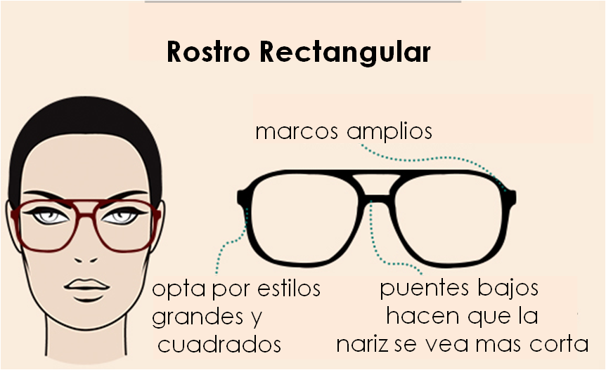 Para rostros alargados monturas rectangulares y poco gruesas.