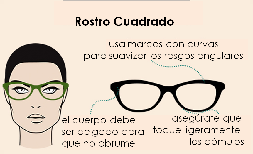Con el rostro cuadrado van bien los estilos redondeados y ovalados para suavizar las facciones. Optar por monturas ligeras y en colores claros. Evitar los modelos cuadrados, rectangulares o muy "barrocos" ya que podrían endurecer aún más las facciones.