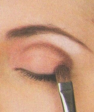 7-Delinear las cejas con una sombra de tono marrón claro y un pincel sesgado humedecido.