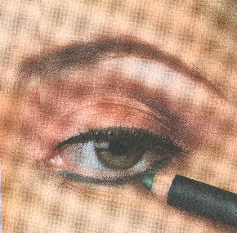 14-Con un color verde oscuro delinear debajo de las pestañas inferiores.