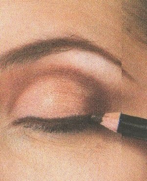 12-Delinear el párpado superior con un color marrón oscuro, la linea debe ser mas gruesa en la parte exterior y mas delgada en la parte interna.