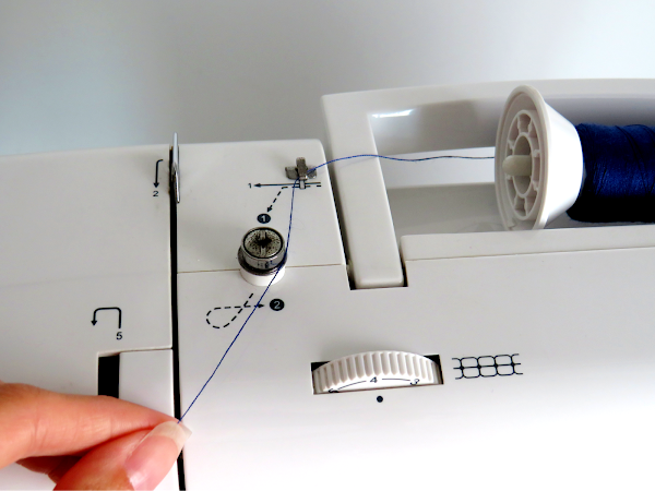 Pasamos el hilo por detrás de la hendidura y enhebramos la aguja