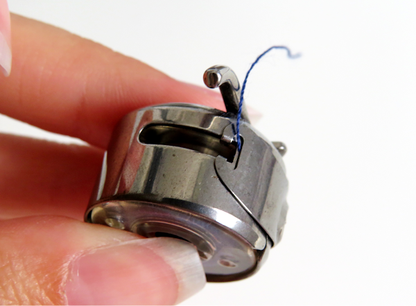 Verás que parte del hilo se queda dentro, eso es porque se ha enganchado con el hilo de la canilla