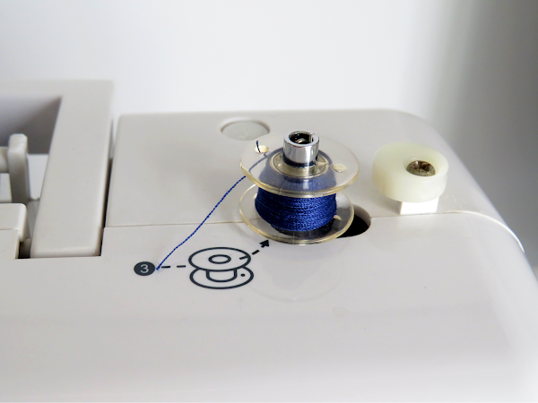En mi máquina de coser, SINGER 3221, los pasos para el devanado están indicados en un círculo negro para diferenciarlo del enhebrado de la aguja