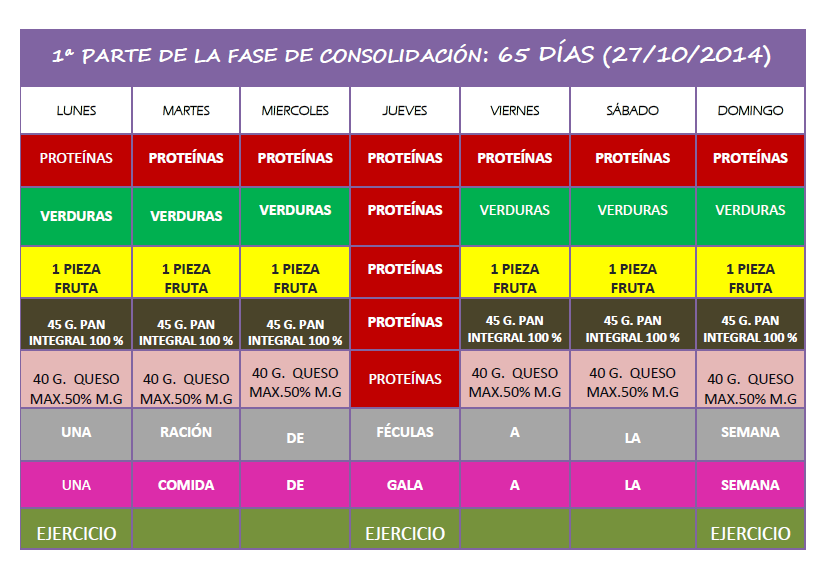 Podemos comer todos los alimentos de las escalera nutricional,ya no en una progresión semanal, sino agrupados según las modalidades que a continuación se indican: