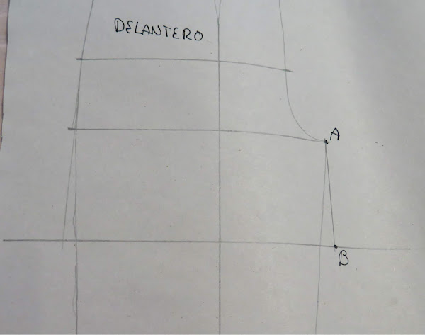 Desde la nueva línea de costado, marcamos entre 3 y 5 cm. Esto es para darle evasée.
