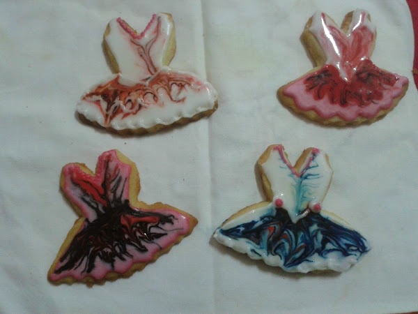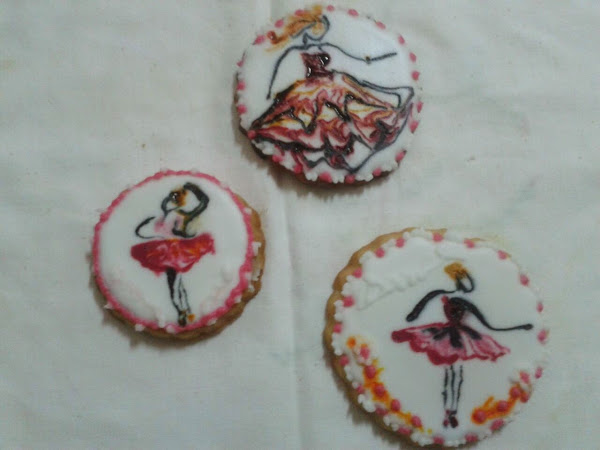 En una de las clases de mi carrera cada día uno de nosotros teníamos que llevar una sorpresa, cuando ne tocó a mi decidí llevar algo comestible y en vez de comprar unos donuts o Kit Kat mi madre sugirió que porque no hacíamos un Happening gastronómico de arte comestible, para ello hicimos galletas modeladas y decoradas con glasa con temática el ballet y este fué el resultado
