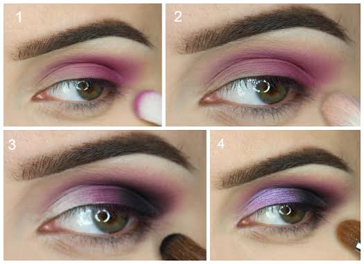 Luego de aplicar corrector de ojeras o pre-base en el contorno de los ojos, toma el pincel ovalado y coloca sombra fucsia en la mitad externa del párpado móvil. Extiéndete apenas sobre la línea que divide este párpado del párpado fijo.