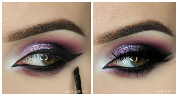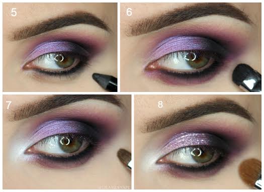 Luego coloca un poco de sombra color fucsia sobre la línea que divide el párpado móvil del fijo en la parte superior del ojo. Difuma bien este paso.