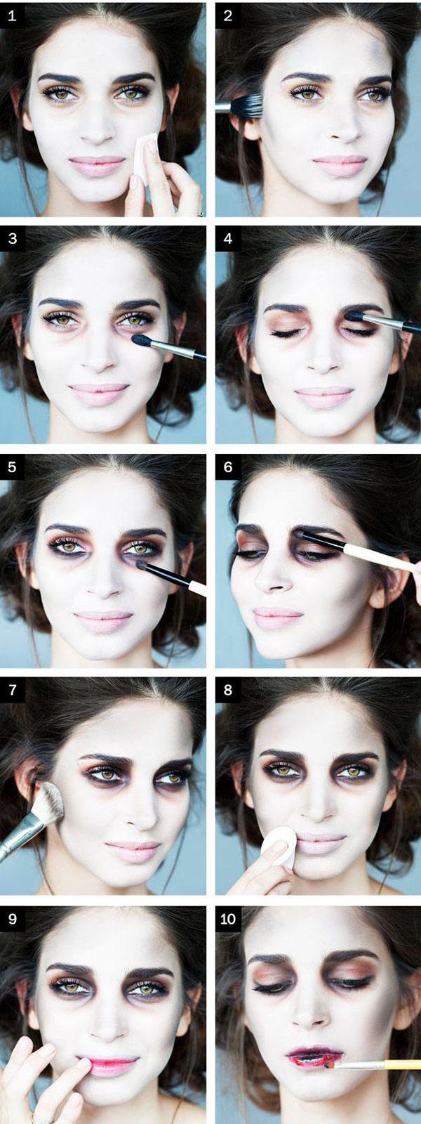 Los zombis se caracterizan por tener una piel pálida, por lo que debes comenzar con ella. Aplicar una base ligera, difuminar con una esponja.