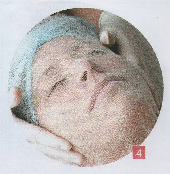 4-Con la gasa cubrir el rostro, el cuello y el escote.