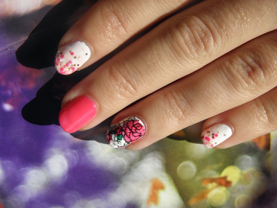 Coloreamos el diseño con los colores que nos gusten. Yo en esta ocasión he utilizado el esmalte "Rumbera" de la colección Fusión de Masglo así como el esmalte "Ecológica" de la colección de secado rápido de Masglo.