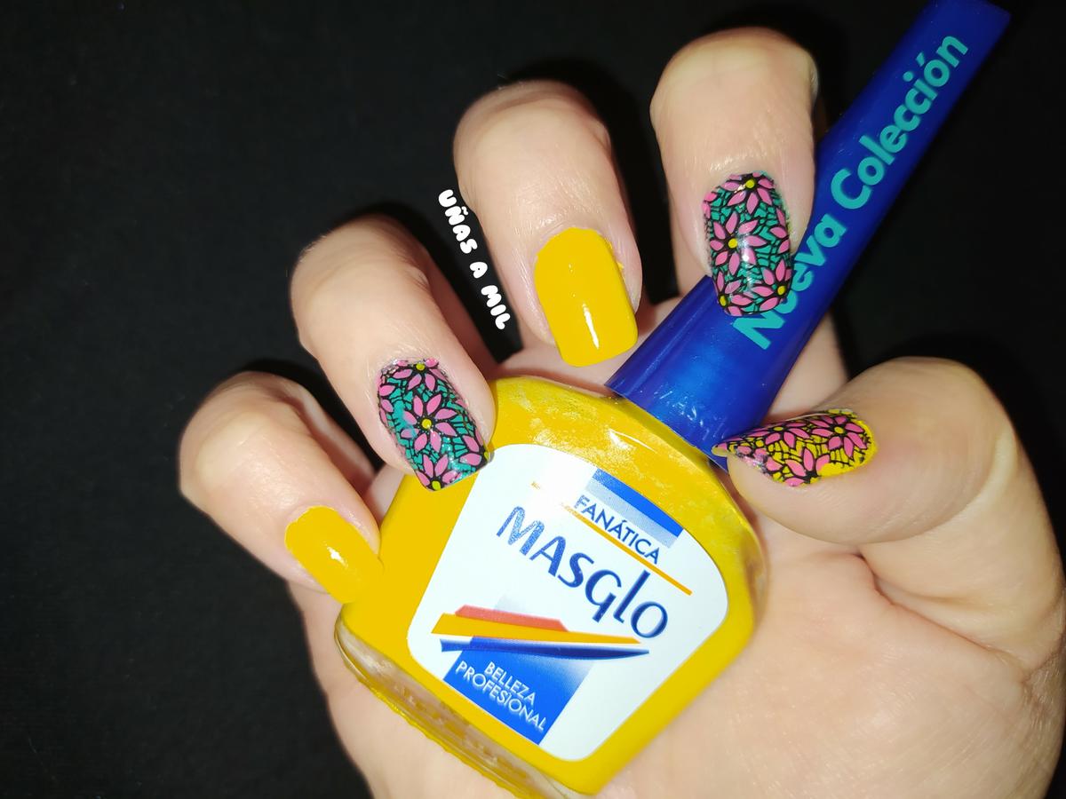 Yo creo que el principal protagonista de esta manicura, es este amarillo tan precioso de Masglo que me enviaron desde la marca hace un tiempo, aquí podéis ver mas fotos: