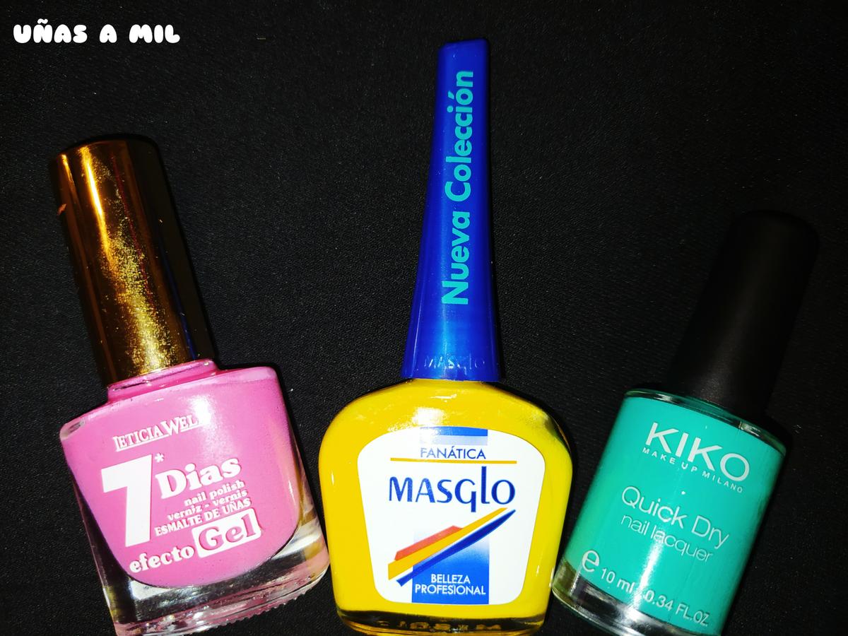 Los esmaltes que he utilizado para esta manicura han sido de lo mas variado: