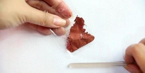 Lo primero que haremos sera triturar la sombra de ojos del color que hayamos elegido, podemos hacerlo en el mismo recipiente de maquillaje donde viene la sombra de ojos, pero ten cuidado que con cualquier viento sale a volar si ya esta bien triturado, así que si no quieres hacer demasiado desorden puedes usar una bolsita transparente para poner la sombra de ojos y triturarla de forma más fácil, procura que quede lo más fina posible para que no queden grumos en la mezcla final.