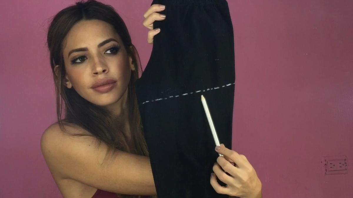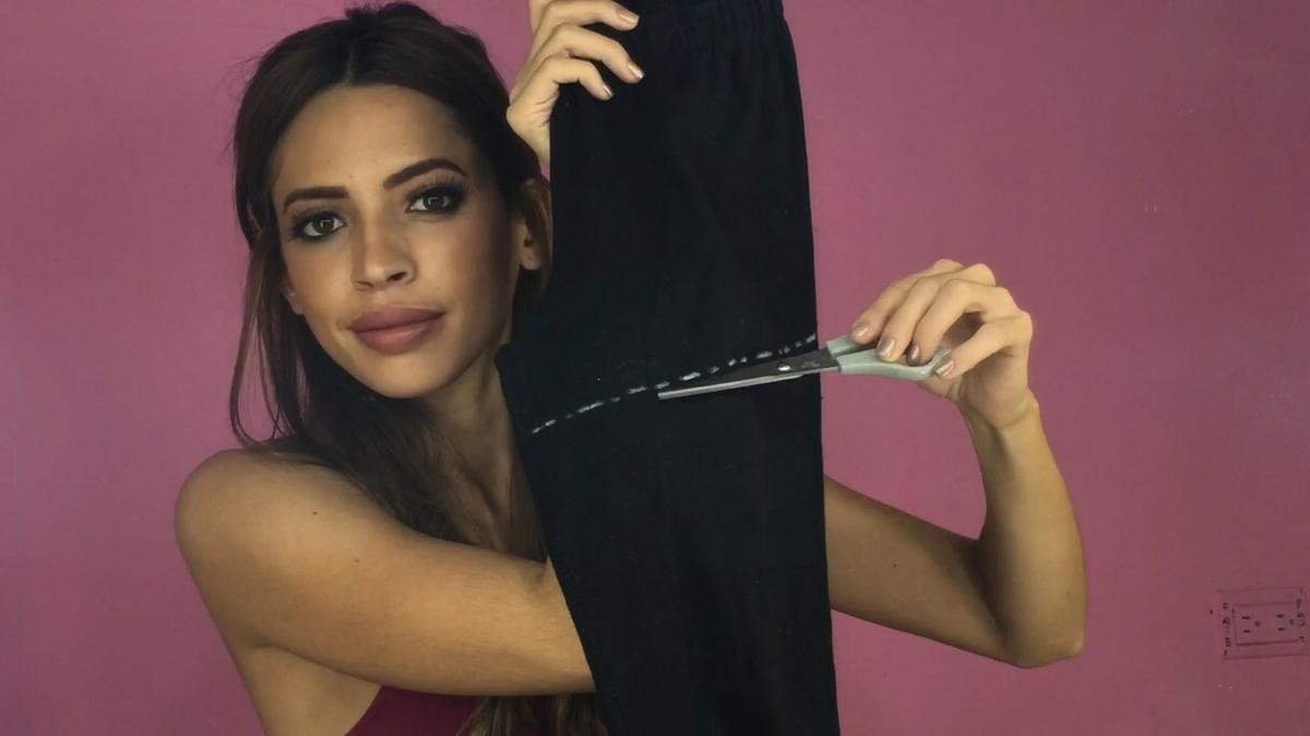 Sí, así como lees, probé hacer esta prenda de ropa con unos leggins básicos negros que tenía en casa, agregué un par de alfileres, aguja e hilo y estuve lista para poner manos a la obra en este proyecto DIY.